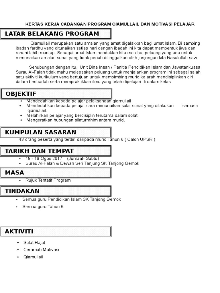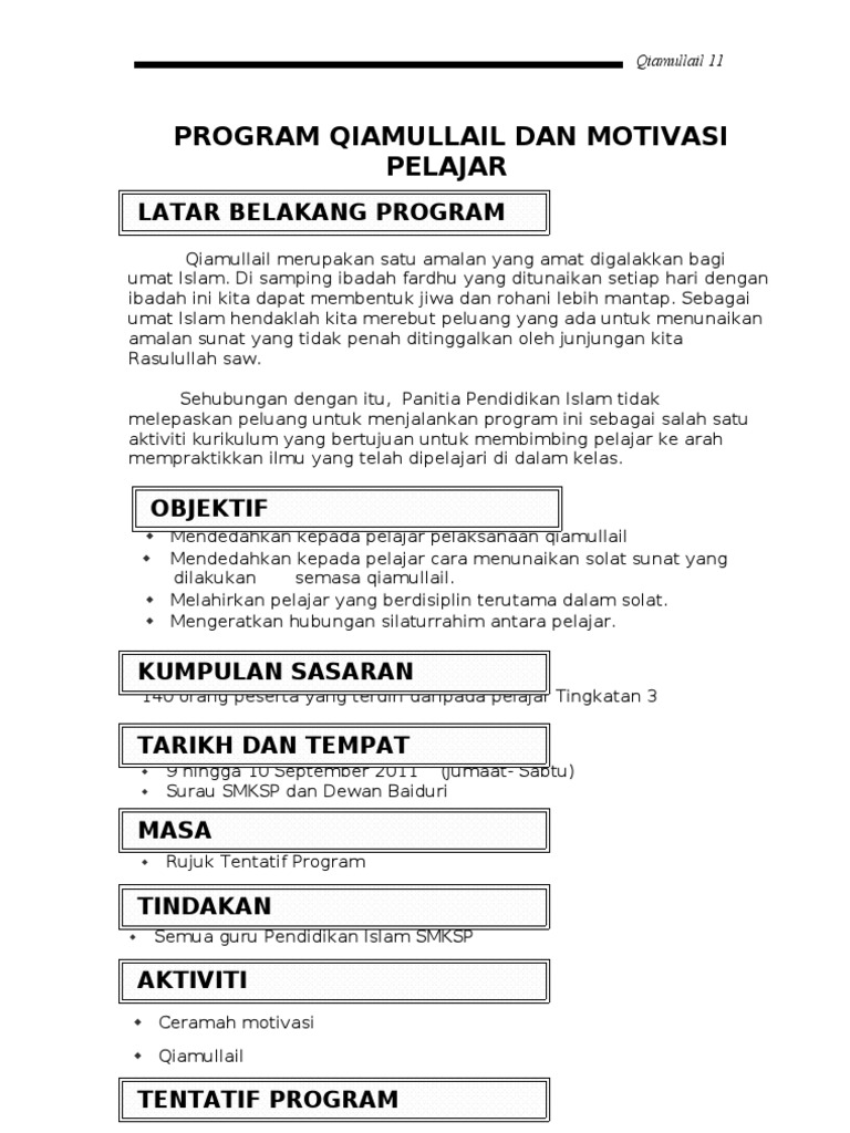 3 kali seminggu selasa rabu khamis semasa perhimpunan pagi 13. Pengertian qiamullail qiamullail ialah bangun pada waktu malam selepas tidur dengan tujuan untuk beribadat kepada allah s w t. Pmr sma dan spm.