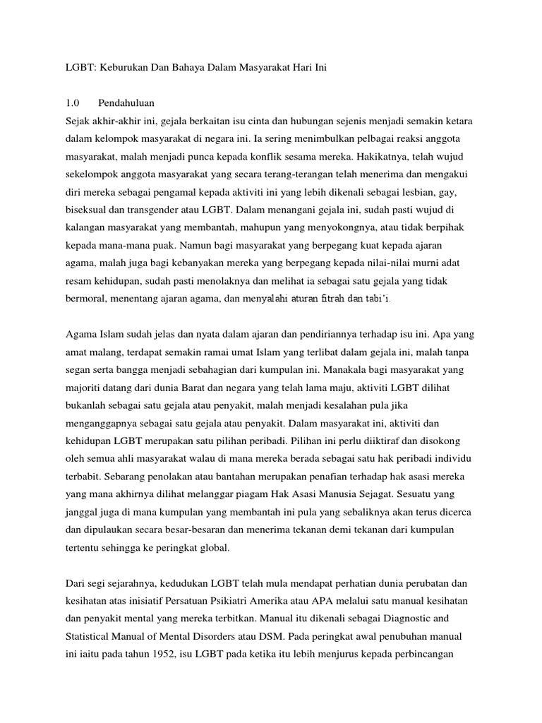 Isu semasa lgbt. Isu homoseksual di tanah air kita bukan baru dalam masyarakat kerana saban hari media massa akan memaparkan kisah kisah yang sering memeranjatkan kita. Bagi saya isu lgbt bukanlah isu mengenai hak asasi manusia. The view of a former lgbt practioner in malaysia 2013 ia menceritakan serba sedikit mengenai sejarah lgbt di malaysia dan juga.
